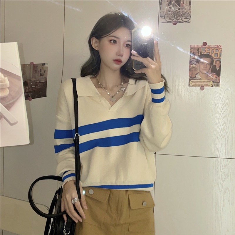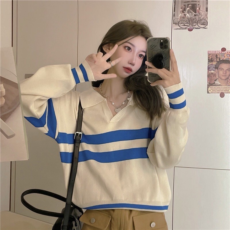 Áo Sweater Tay Dài Cổ Bẻ Phong Cách Retro Hàn Quốc Thời Trang Cho Nữ free ship