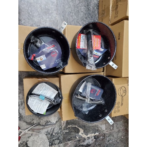 Bộ Nồi Và Chảo Đá Hoa Cao Cấp Chống Dính Cho Bé Ăn Dặm size 16cm (5 chi tiết)