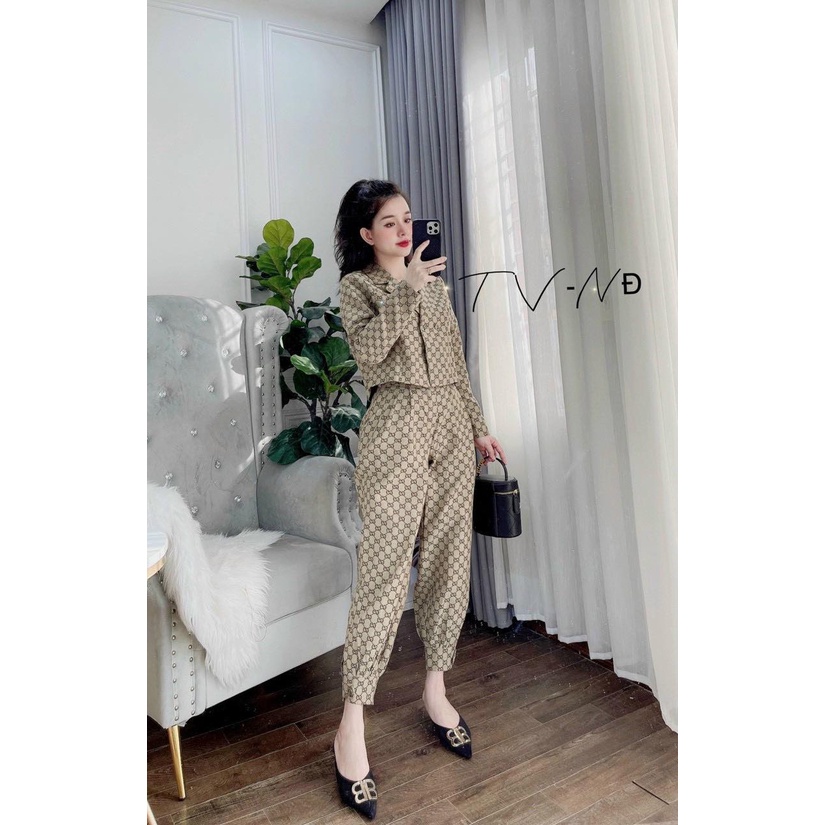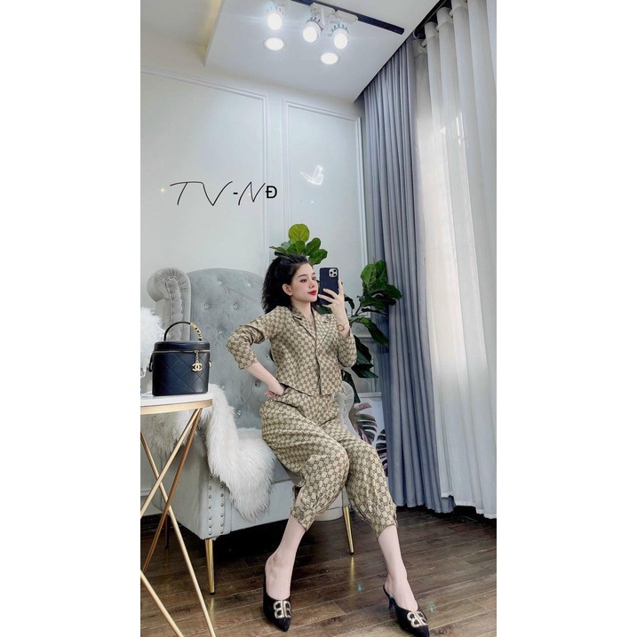 Set bộ nữ hàng Qc họa tiết GG siêu đẹp sang chảnh lên dáng siêu điệu đà - Đồ bộ nữ hàng thiết kế siêu xinh free ship